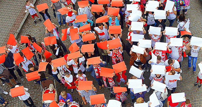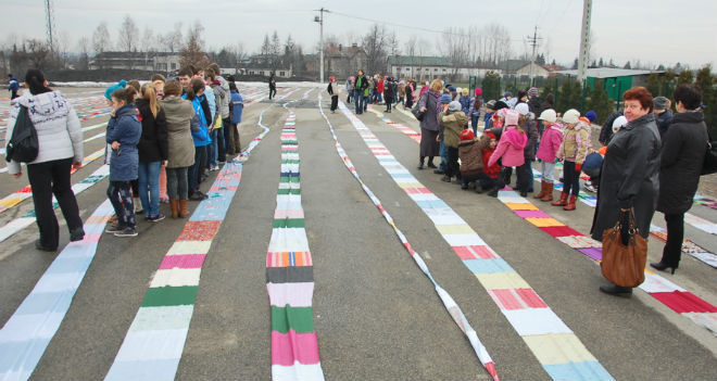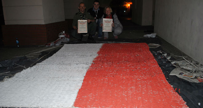 Rekordowy kontur Polski z biało czerwonych kartonów