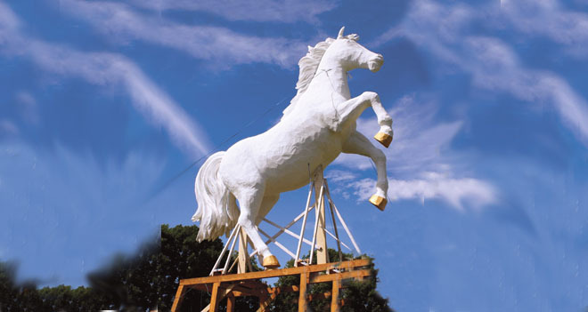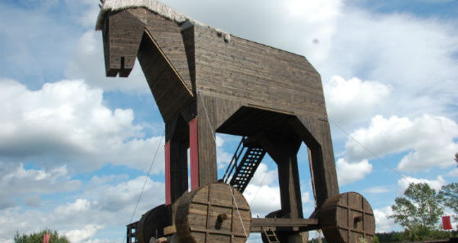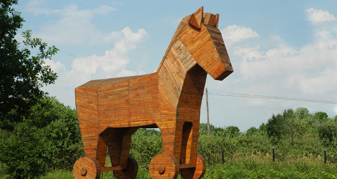 Największy koń trojański wykonany w Polsce stał dotąd w miejscowości Bonowice, koło Szczekocin, w Jurze Krakowsko-Częstochowskiej. To tam zaprezentowano w 2008 r. konia z drewna o wysokości blisko 8 m, długości 6 m i szerokości 3,5 m.