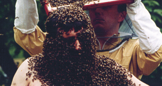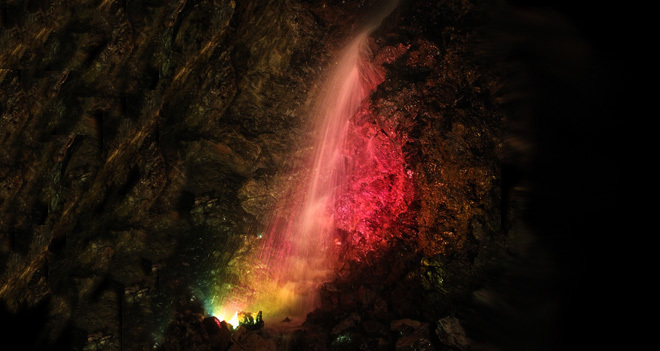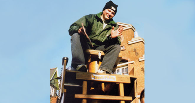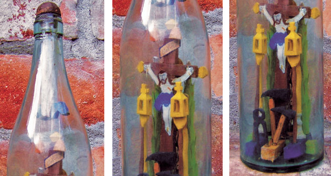 Aby zbudować charakterystyczny stożek wulkaniczny zamontował on najpierw stalową ramę, na której oparł konstrukcję drewnianą i wszystko to oblepił gliną. Wcześniej wewnątrz umieścił ładunek wybuchowy wyrzucający pył i dym oraz instalację z lawą. Wybuch, ku uciesze zgromadzonej licznie publiczności, powtarzano kilkakrotnie.