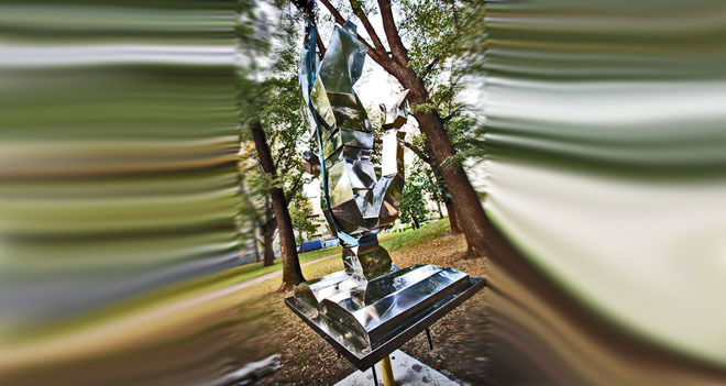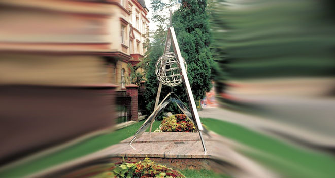 Zadania tego podjął się młody doktorant Wydziału Biologii i Nauk o Ziemi, Instytutu Nauk Geologicznych Piotr Kowalski. Przy pomocy kilku osób, w tym miejscowych dzieci, zbudował tematyczny obiekt o wysokości 180 cm i wymiarach podstawy 220×220 cm.
