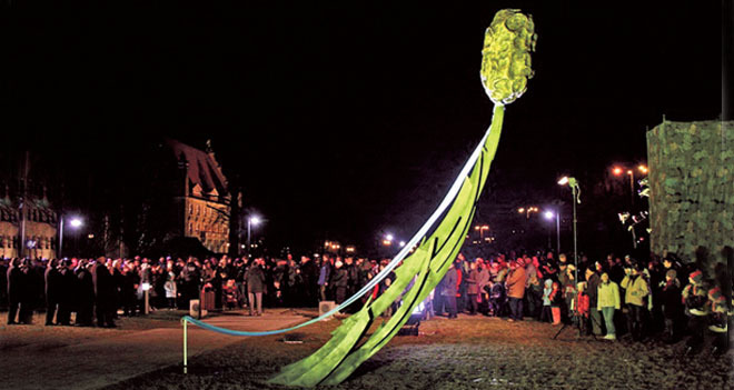 Całość stanęła na dwumetrowej wysokości cokole usypanego z 500 ton kamiennych głazów.