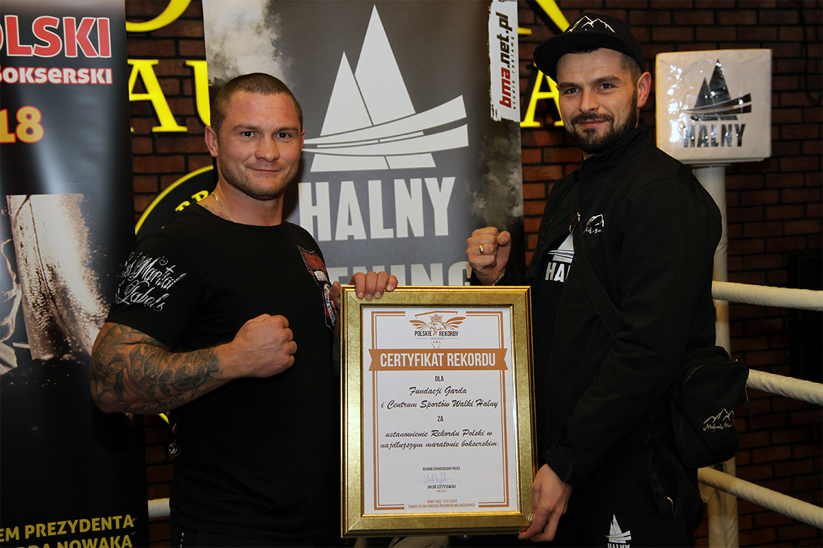 Dla zawodników nowosądeckiego Klubu Halny, sobota 13 stycznia 2018 roku okazała się wyjątkowo szczęśliwym dniem. Ustanowili oni, a właściwie pobili poprzedni, Rekord Polski w najdłuższym maratonie bokserskim, który ustanowiony był przez Klub Sportów Walki „Boxing Odra” na 12 godzin i 40 minut. Członkowie Halnego wraz z uczestnikami charytatywnej zbiórki zorganizowanej przez fundację Garda oraz klientami Galerii Trzy Korony boksowali na ustawionym obok tamtejszego Browaru, bokserskim ringu zmieniając się bez żadnej przerwy przez 13 godzin, 13minut i 13 sekund. Ustanowili tym samym nowy Rekord Polski.