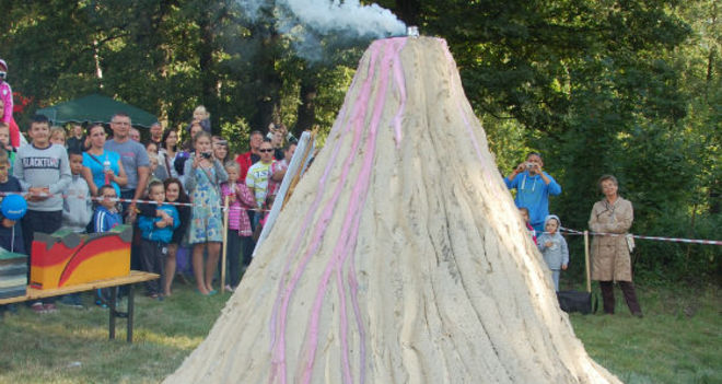 Dziś trudno w to uwierzyć, ale około 30 milionów lat temu w okolicach Sudetów (dolnośląskie) czynne były liczne wulkany. Nawiązując jakby do tego faktu, kierownictwo Fundacji „ANIMUS” w Wilkowie Osiedlu, koło Złotoryi, w osobach Łucji i Marty Marchaj wymyśliło niespotykany dotąd rekord Polski polegający na wybudowaniu małego, działającego wulkanu.